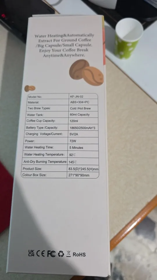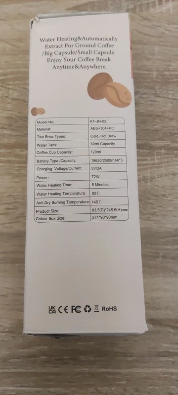 It works well so far, only that the packaging arrived in terrible conditions and without any protection for the product. I liked it, the only thing I didn't like is that it stores very little water. It's supposed to be for taking anywhere; it should have at least 400ml because it's very little coffee.